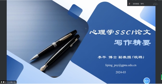 随后,李平副教授从初学者对学术写作的一些问题进行引入,打破了研究者对外文写作与阅读的恐惧,并指出写作经验欠缺、语言积累不足与逻辑思维较差是写作中的主要障碍,以此呼吁研究者们养成多读、多写等良好的写作习惯。其次,他指出要从读者的角度进行写作,通过确保语言的精确性等路径去提升文章的质量,以此给读者们展现更加清晰的写作逻辑。再者,他表明了句子的流畅性、段落的自然过渡与创新的篇幅布局在写作中的重要意义。最后,从标题、摘要、引言、方法、结果与讨论六个方面分别举例说明如何能写得更好。除此以外,李平老师还分享了《文思泉涌:如何克服学术写作拖延症》、《写作提高一点点》等等能够提升写作技能的相关书籍。