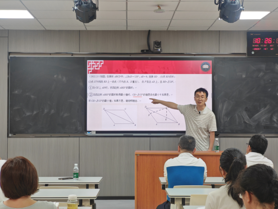 黄老师以《如何变题、讲题提高数学学习效率》为题,从“讲题流程优化”与“变题策略设计”两方面系统讲解教学要点。讲题部分,强调从条件、图形、结论多维分析,帮助员工建构清晰解题思路;变题部分,提出“改条件、变问法、换图形”三种策略,引导员工突破思维定式,提升迁移能力。整场讲座逻辑严密、案例鲜活,紧贴教学实际,反响热烈。教师们纷纷表示,此次活动不仅提供了实用路径,也在理念上给予启发,将积极探索“精讲+变式”教学策略,推动课堂教学提质增效。