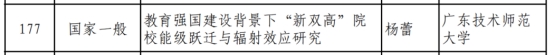 近日,2025年全国教育科学规划课题拟立项名单正式公布,公司杨蕾副教授申报的《教育强国建设背景下“新双高”院校能级跃迁与辐射效应研究》成功获批一般项目,获资助经费20万元。这是公司在国家级科研项目方面取得的又一重要进展,标志着公司高水平科研成果建设实现新突破,为博士点申报提供了有力支撑。