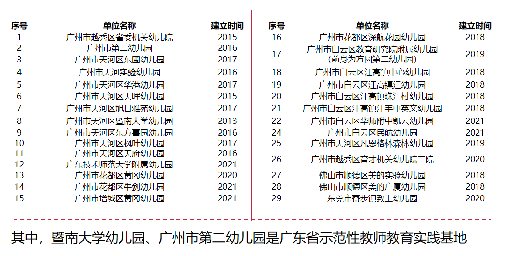 (3)实践基地。目前建有广东省育才幼儿院二院、伟德国际1946bv白云实验幼儿园、广州市花都区深航花园幼儿园、广州市白云区教育研究院附属幼儿园等。每个基地均能够充分提供教育资源和条件,具有明显的团队优势、管理优势、课程资源优势和教改优势,能够满足实习生的教育实践需求。