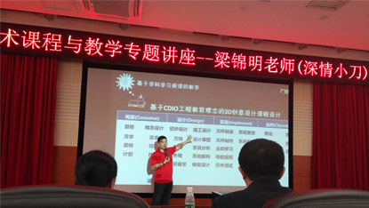 梁老师围绕“信息技术课程与教学”主题,和同学们分享了信息技术课程定位与发展、课程内容体系、基于学科学习规律的教学以及学科前景等内容。重点结合教学案例,梁老师深入浅出阐述了信息技术课中的“非技术性程序设计”思想及其内涵;结合学科发展趋势及规律,重点分享基于CDIO工程教育理念的3D创意设计课程设计,详细向同学们展示如何在课堂教学中将真实项目的管理思维有效传授给员工的过程。