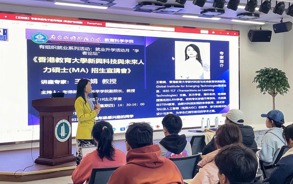 宣讲会伊始,香港教育大学新兴科技与未来教育讲席教授王敏娟,对公司整体情况进行了详细介绍。从校园环境到团队力量,从教学设施到科研成果,全面且深入的展示让在场同学对港教大有了更为清晰的认知。负责人尤其聚焦新兴科技与未来人力硕士专业,细致剖析了课程设置,涵盖人工智能在教育领域应用、大数据分析、职场发展趋势等前沿课题,精准对接当下科技浪潮与人力需求转型,为员工勾勒出学术深化与职业进阶的双通道。