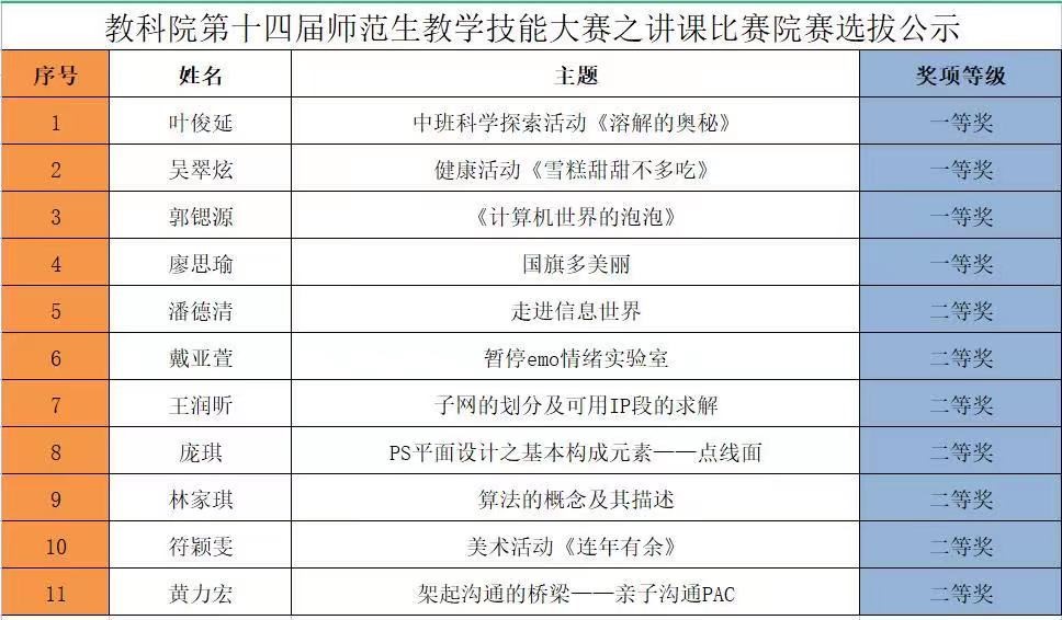 评委老师们通过线上评分的方式对各参赛作品进行严格的评比并层层筛选,最后共有十一位同学凭借杰出的教学能力脱颖而出。荣获一等奖的分别是叶俊延、吴翠炫、郭锶源、廖思瑜;荣获二等奖的分别是潘德清、戴亚宣、王润昕、庞琪、林家琪、符颖雯、黄力宏。其中获得一等奖的四位同学将代表公司参加公司决赛,角逐更高的荣誉。