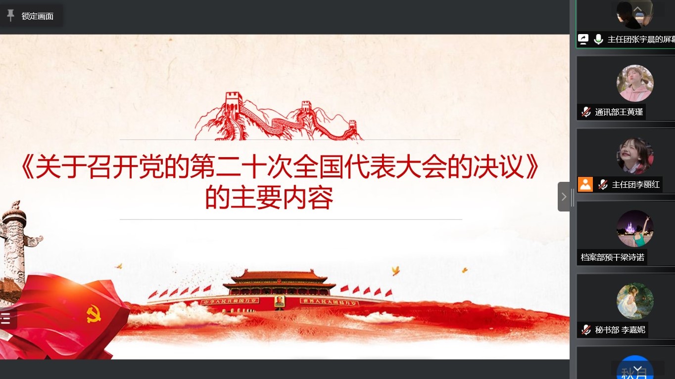 2021年12月8日,为学习和传达党的十九届六中全会精神,教育科学与技术公司员工党建工作委员会于线上召开了深入学习贯彻党的十九届六中全会专题学习会暨第三次全体工作例会。本次会议由员工党建工委副主任李丽红主持,专职组织员吴晨阳老师和全体成员参加会议。