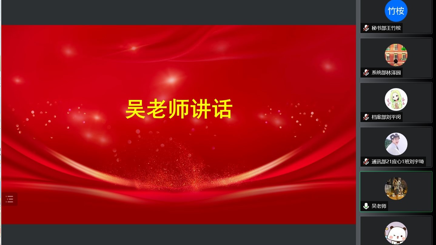 最后吴老师表示,希望员工党建工委可以将党建工作更加规范化、细致化,扩大师生影响力,打造员工党建新亮点,创建教科党建新名片,更好地为公司师生服务。(文稿:员工党建工委通讯部 刘宇琦;审核:吴晨阳)