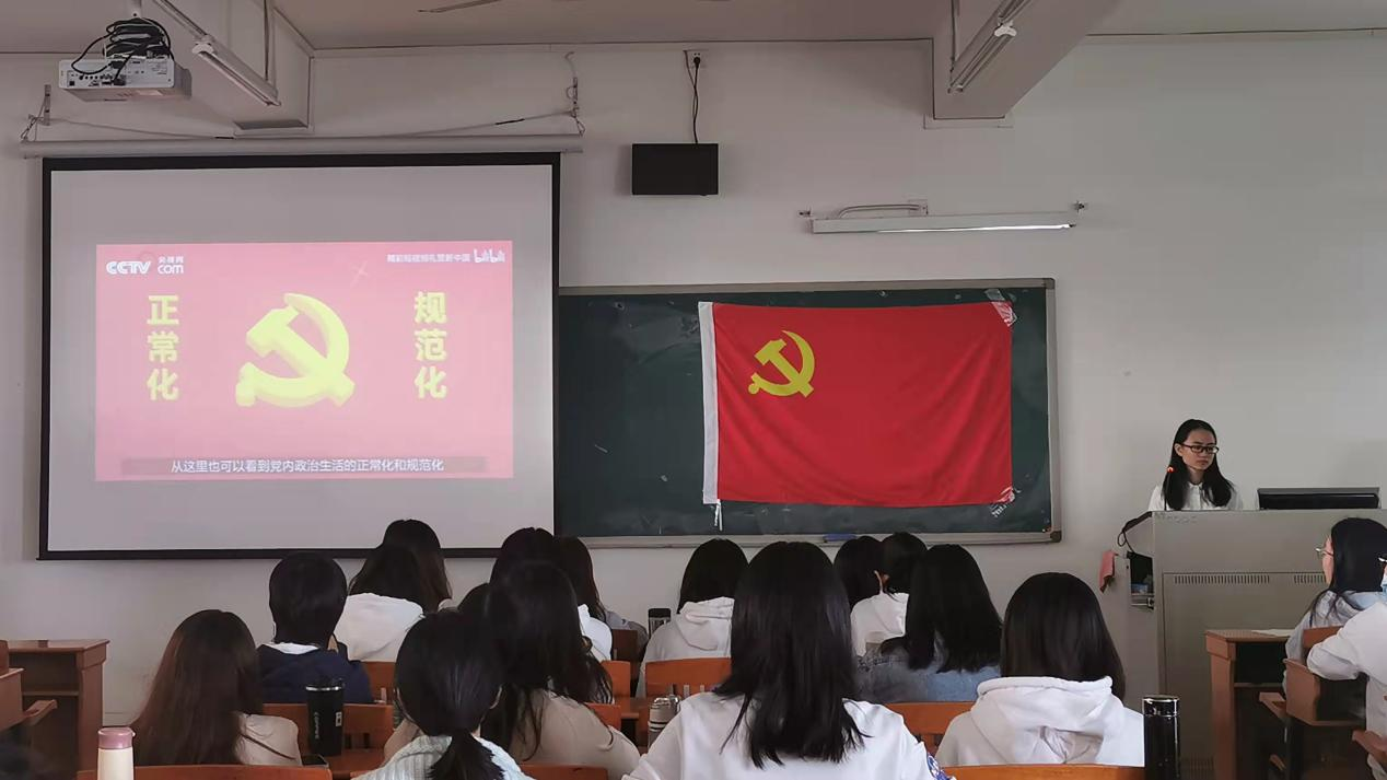 (图:学前教育本科生党支部副书记郑蔓妮同志主持)
