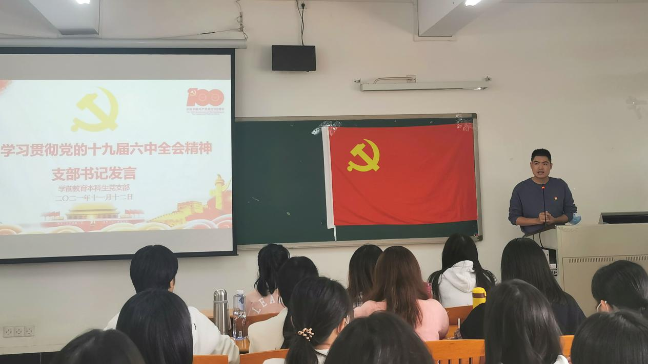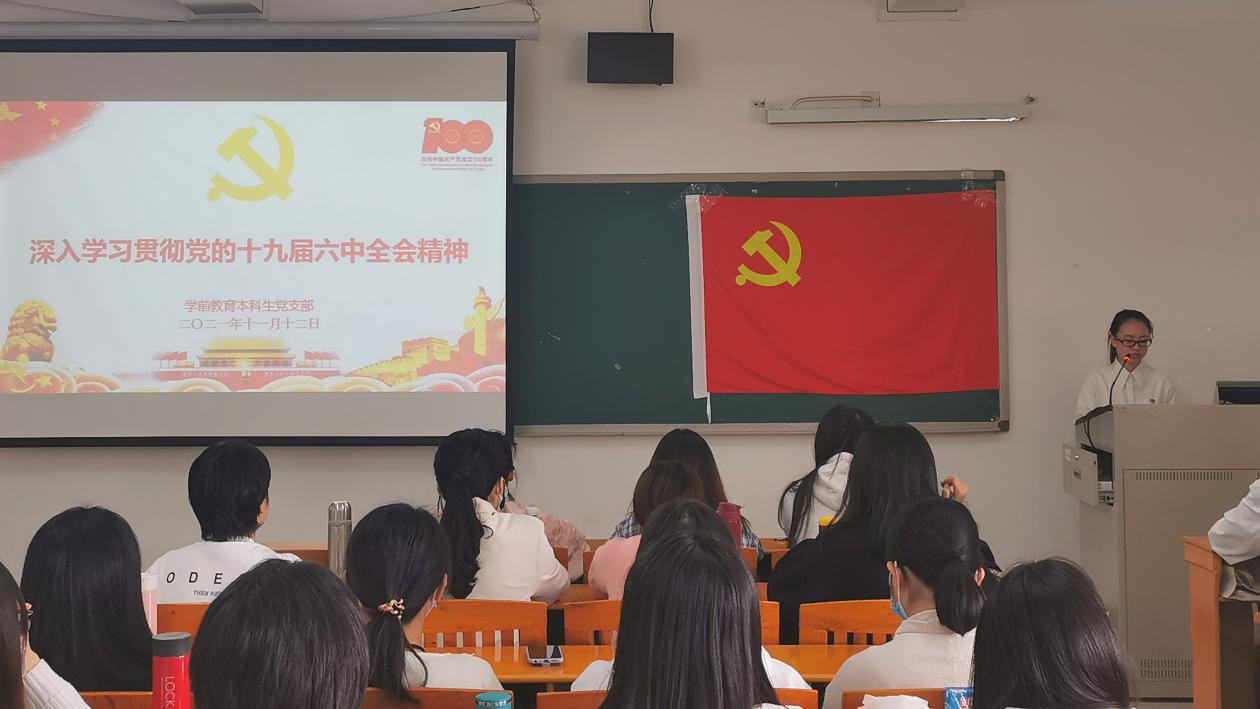 党的十九届六中全会于11月8日至11日在北京召开,近日来各位党员通过多种形式,认真学习、深入研讨,迅速掀起了学习贯彻全会精神的热潮。11月12日上午,bevitor伟德国际1946学前教育本科生党支部在三教503教室开展了深入学习十九届六中全会精神专题学习会。本次会议由bevitor伟德国际1946学前教育本科生党支部副书记郑蔓妮同志主持。