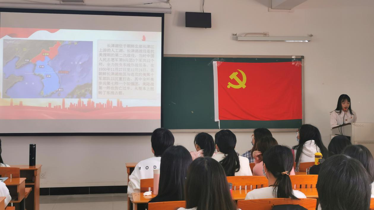 (图:党史宣讲人徐雪梅同志带领党员们深入学习抗美援朝精神)