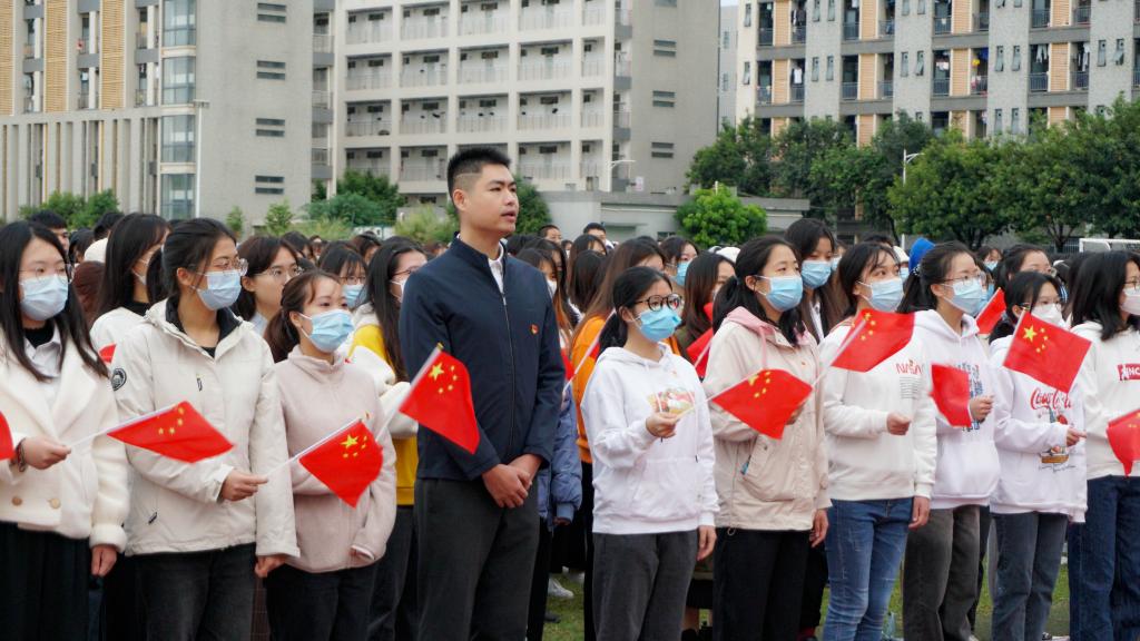 活动最后,全体师生手持五星红旗,共同唱响《没有共产党就没有新中国》,表达对中国共产党百年华诞的深情祝福。