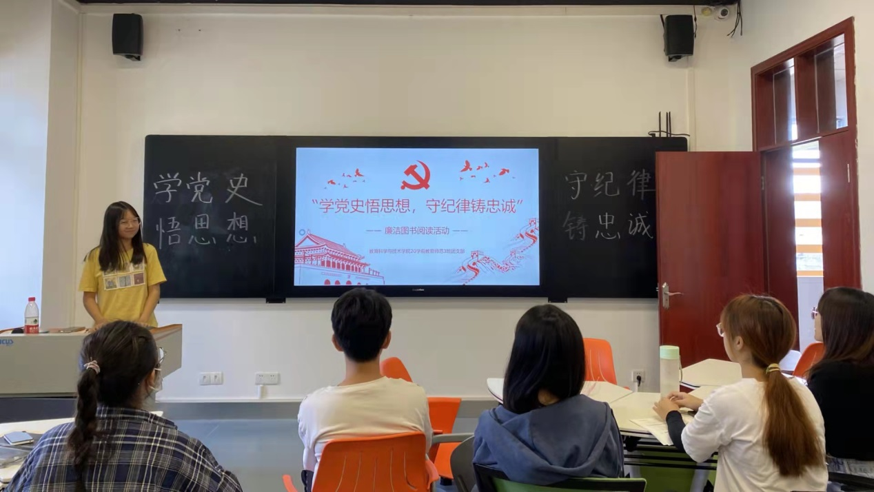 为进一步推进廉洁文化建设,营造风清气正的社会氛围,推进公司党风廉政建设和党史学习教育,根据《伟德国际1946bv2021年师德建设主题教育月活动方案》(广师大党委〔2021〕103号)精神,教育科学与技术公司于10月12日至25日组织各班级开展以“学党史悟思想,守纪律铸忠诚”为主题的廉洁图书阅读主题教育活动。