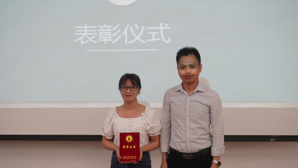 紧接着,公司隆重表彰第八届广东省本科高校师范生技能大赛的获奖者们,由获奖选手周子棋同学发表获奖感言,拉开了本次比赛的帷幕。