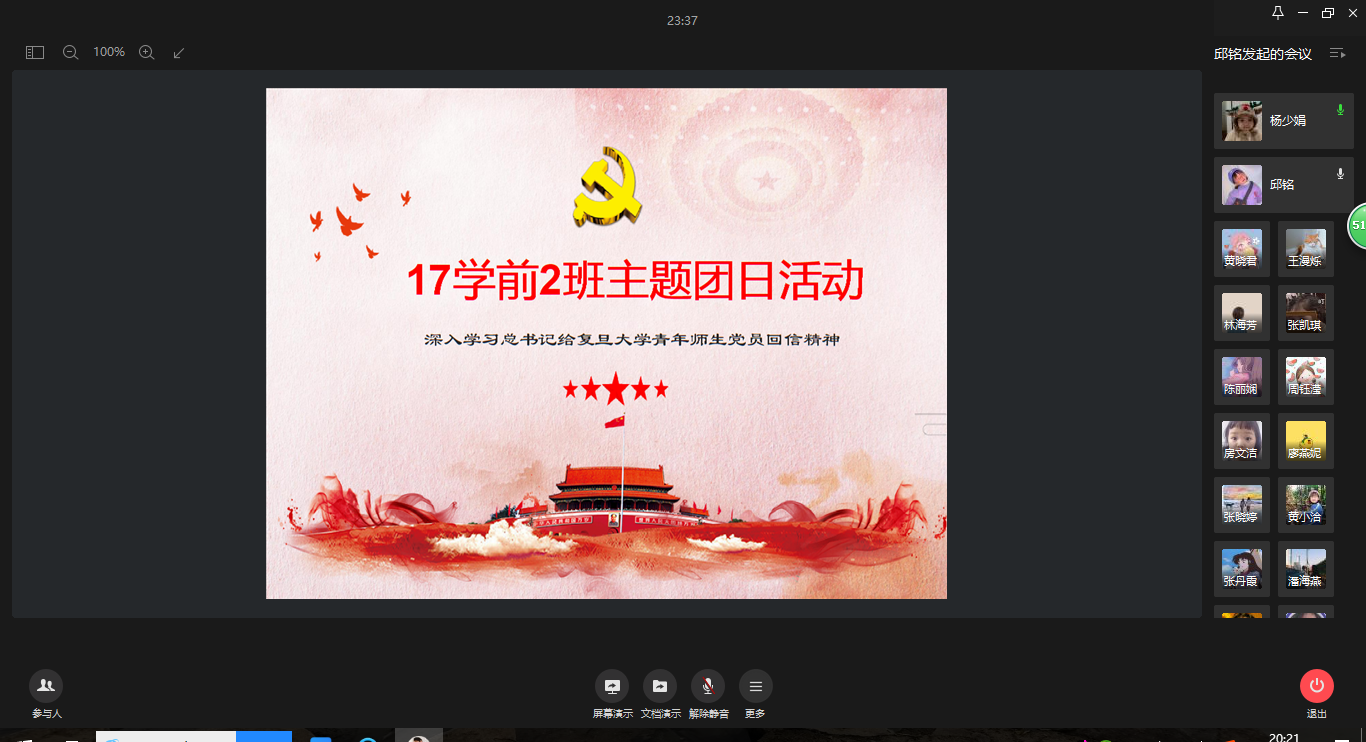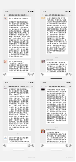 此外,各团支部也通过不同形式,开展大讨论、大学习习近平总书记给复旦大学青年师生党员的回信精神,用实际行动喜迎中国共产党建党99周年!(员工党务工作组 郑蔓妮;复审:吴晨阳)