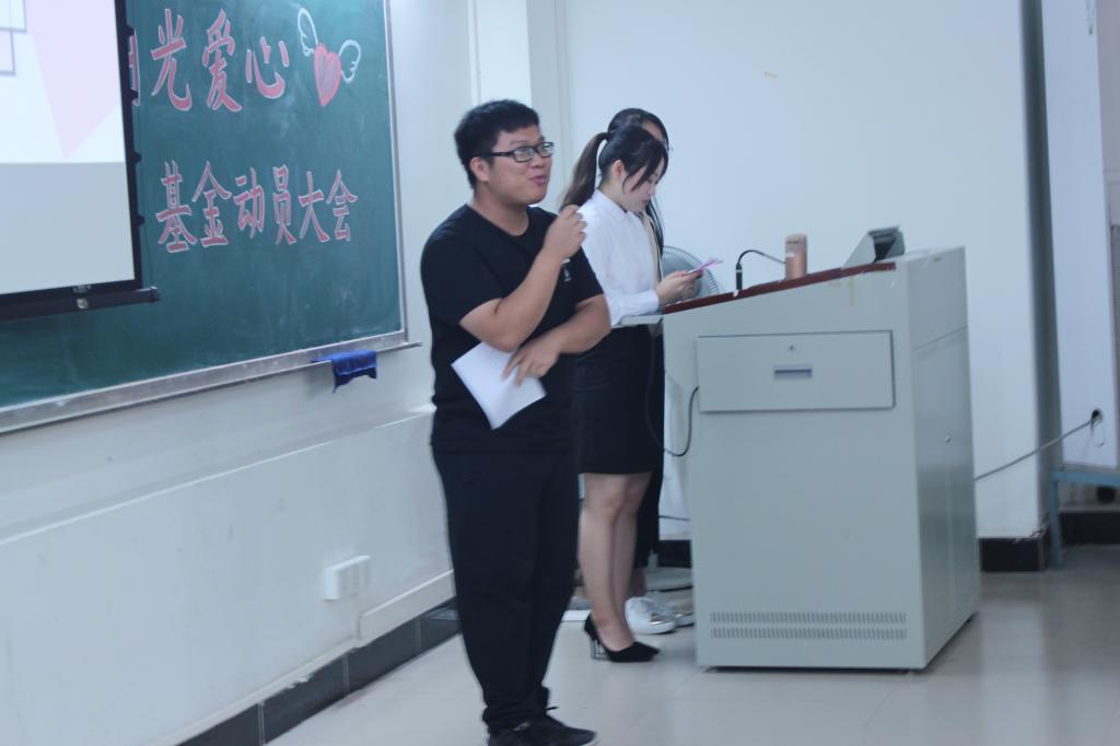 此次会议首先通过播放采访视频向同学们展现了阳光爱心基金会自成立以来所发挥的作用,并介绍阳光爱心基金会的概况及相关内容,在会议的进行中,主持人发起了“一毛钱”募捐倡议,希望每位同学能够伸出自己的援助之手,积少成多,献出一份爱心,让爱心的火炬烧得更旺,传递更远。