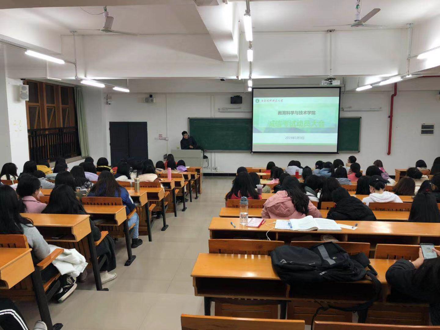 为了总结本学期的各项员工工作、动员员工积极参与寒假社会实践并呼吁同学们诚信考试,公司于2019年1月3日晚在白云校区三教414阶梯教室举行了2018-2019学年第一学期诚信考试动员会暨员工期末工作会议,2017级和2018级本科生参加了本次会议,会议由辅导员吴晨阳老师主持。