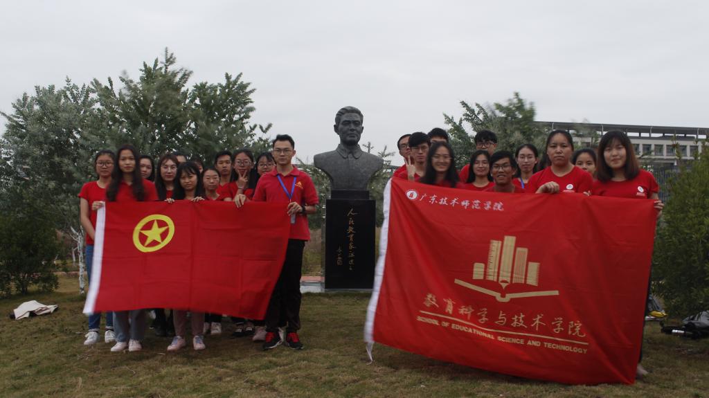 随后,团学各部门的部长跟随王孜老师前往瞻仰罗明同志和汪达之同志的雕像。看着那两座屹立高处的雕像,他们挺直了腰杆,静静地矗立在那儿,同学们仰视他们,悼念他们,对他们怀着敬意和感恩之心。