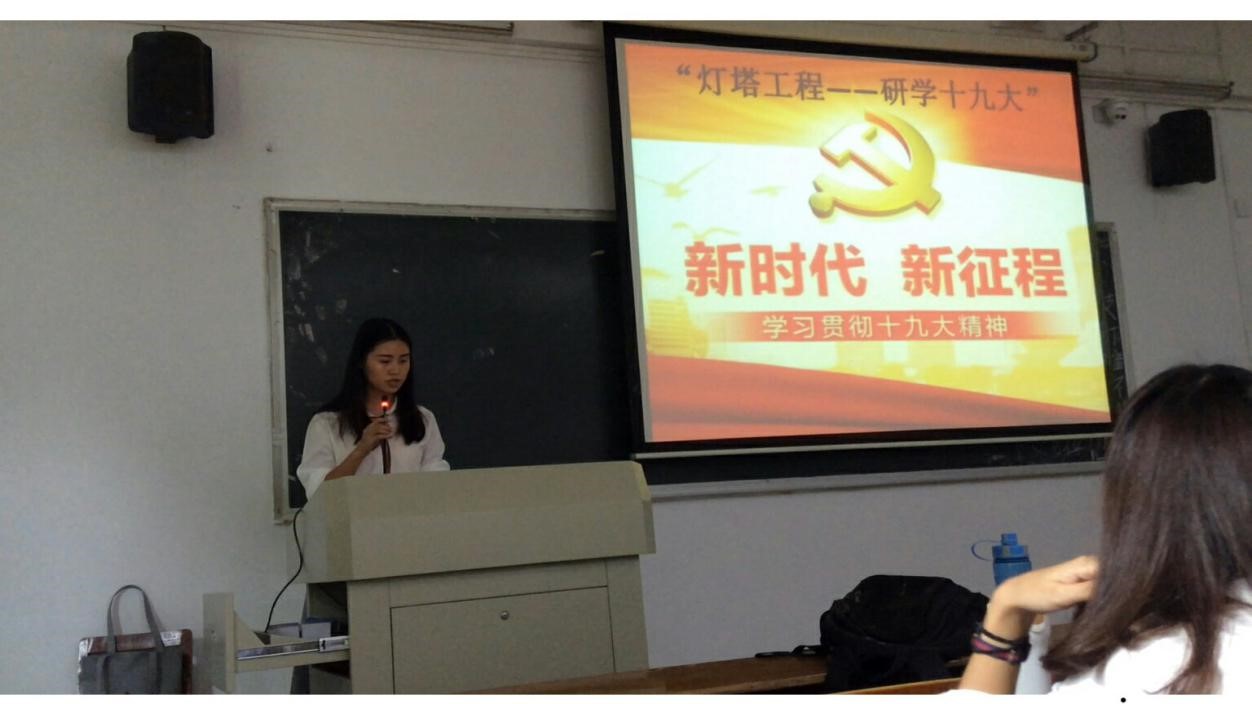 为了积极响应广东省员工联合会“灯塔工程”员工团日竞赛活动,进一步加深同学们对于十九大精神的了解,增强团员们的先进性和光荣感,紧跟党的步伐,激励大家自觉成为社会主义核心价值观的实践者和传播者,争做一名优秀的共青团员。117日(周三)中午12时,教育科学与技术公司研究生团支部在校本部一教201教室举办了以“灯塔工程——研学十九大”为主题的团日活动。参与此次活动的人员有教育科学与技术公司研究生辅导员梁爽老师以及研究生各个班级的团员代表。