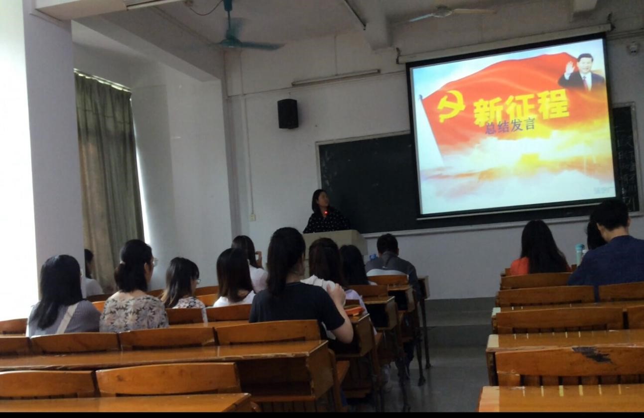 此次团学活动共分为四项议程进行。活动的第一项内容是分别由团员代表16级职业技术教育学单恩玲同学、18级现代教育技术王敏同学、18级职业教育技术学王峰同学以学习十九大精神为主题进行专题演讲。