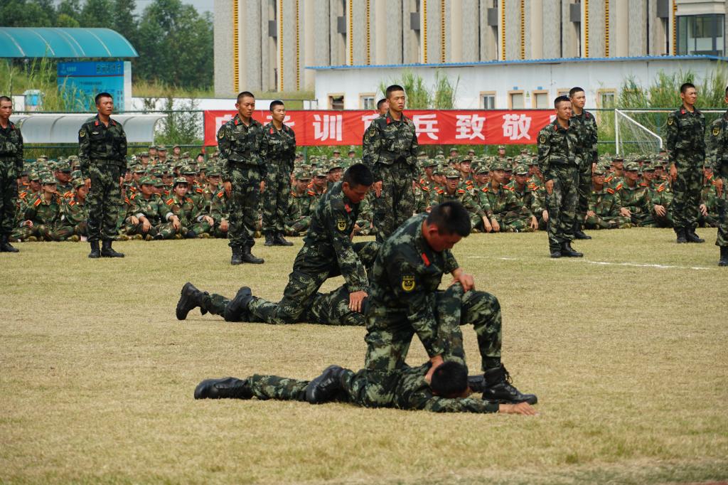 紧接着就是分列式方队和军事汇报表演方队的时间。分列式方队的新生用他们饱满的热情,踏着铿锵有力、整齐划一的步伐,走过主席台,接受所有领导老师的检阅;军事汇报表演包括由员工表演的“擒敌拳”、“警棍术”、“心理健康操”以及由承训教官表演的“格斗擒拿”,真是精彩绝伦,令人大饱眼福!