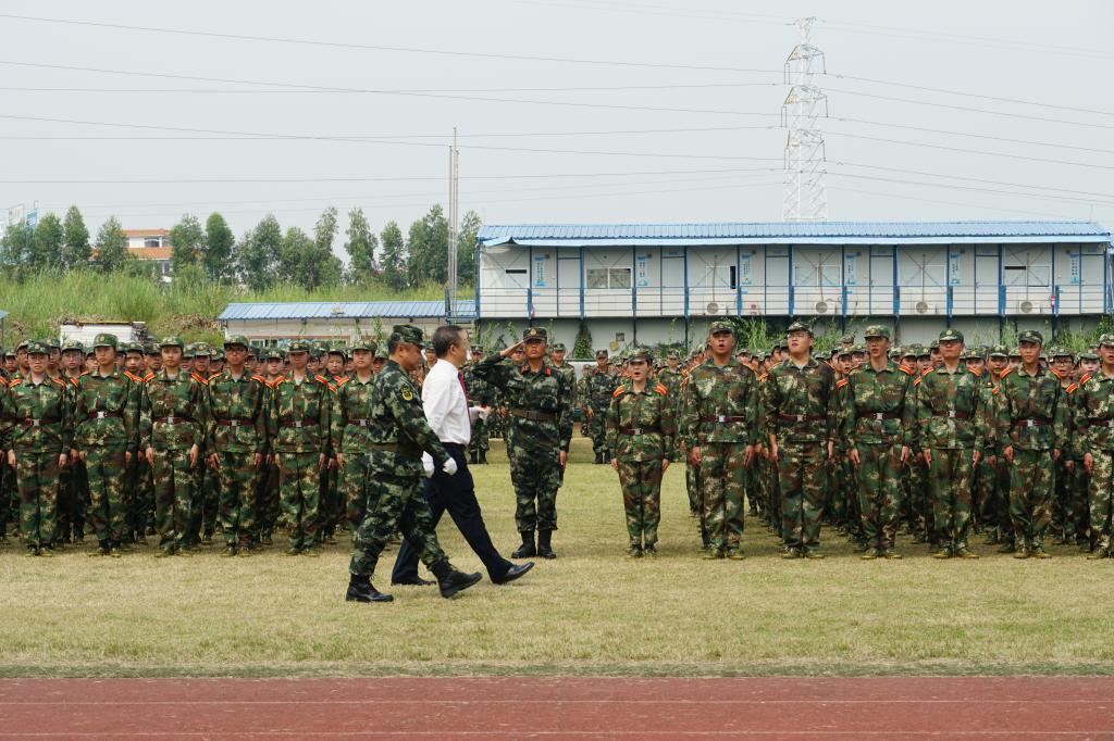首先,公司骆少明经理在承训首长的带领下,对所有员工方列进行检阅。在一声声坚定、有气势的“首长好”“为人民服务”中,我们感受到了这12天对新生的改变。