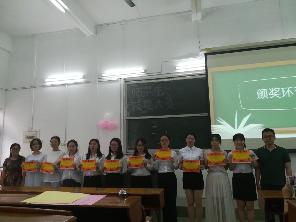 大赛最后一项是孙文云老师为此次大赛点评。她指出作为师范生要端正态度,以赛促学,通过竞争学习的方式来达到相互影响学习的目的,同样指出作为以后的教师首要应具备的首要素质就是有责任心,在这一段时间内同学们应注意培养自己的语速、语调、音量,注意合理的着装,认真的学习备课、讲课的技能。要想做得好,关键在于多练习。