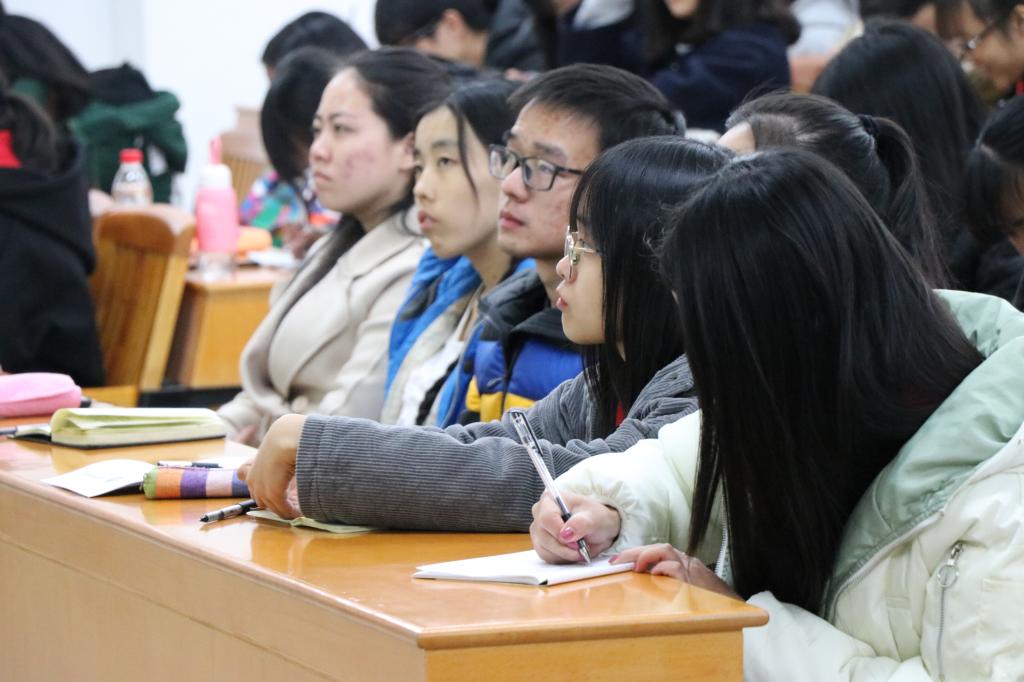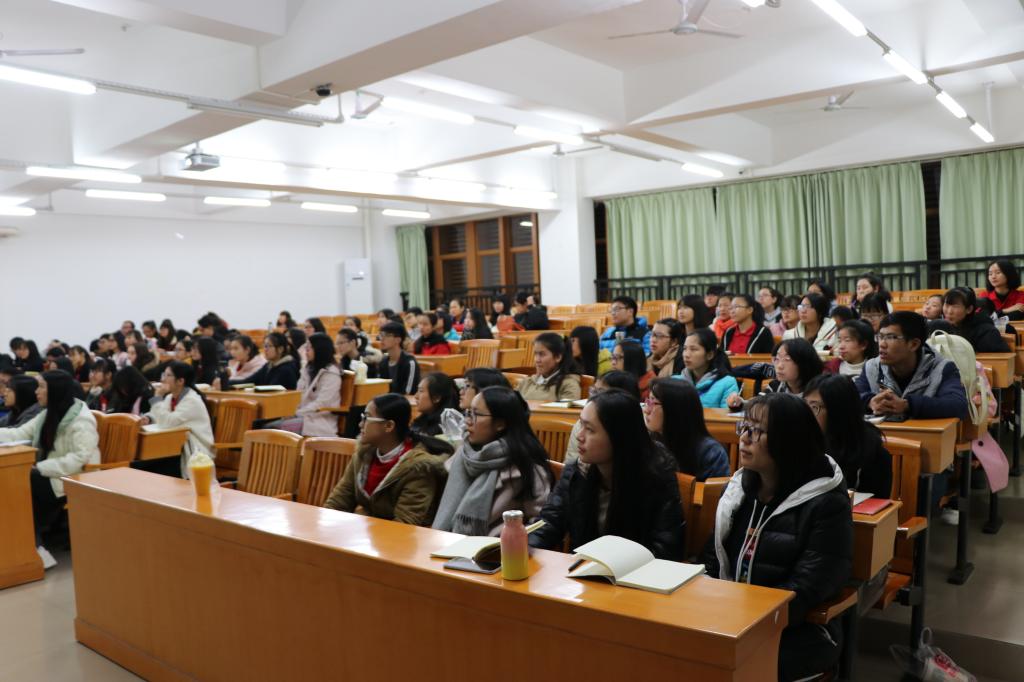 吴水爱副书记围绕三个主题为在场员工干部讲解,分别是:学习宣传贯彻党的十九大精神、如何成为一名合格的共产党员,当代老员工的历史责任与担当。吴水爱副书记提到了习近平新时代中国特色社会主义思想“八个明确”和四个伟大、四个自信,强调坚定道路自信、理论自信、制度自信、文化自信;作为当代老员工更应该坚定不移的坚持走中国特色社会主义道路,树立坚定的理想信念。吴书记还表示,习近平总书记所做的十九大报告,主题鲜明、思想深邃、内涵丰富、博大精深、气势恢宏、催人奋进,通篇闪耀着马克思主义真理的光芒;通篇展示了以习近平同志为核心的党中央引领新时代中国特色社会主义的理论成果、实践成果、创新成果;通篇激励着全党全国各族人民决胜全面建成小康社会,夺取新时代中国特色社会主义的伟大胜利,实现中华民族伟大复兴中国梦的坚定信念。作为新时期的共产党员,要讲奉献、有作为,要全心全意为人民服务,勇于担当对党忠贞不渝,坚定理想信念。大会最后,吴水爱副书记表达了她对同学们的寄望:希望同学们即使身处不同校区,也要能够齐心协力、团结协助、突破困难,为实现理想目标而而奋。