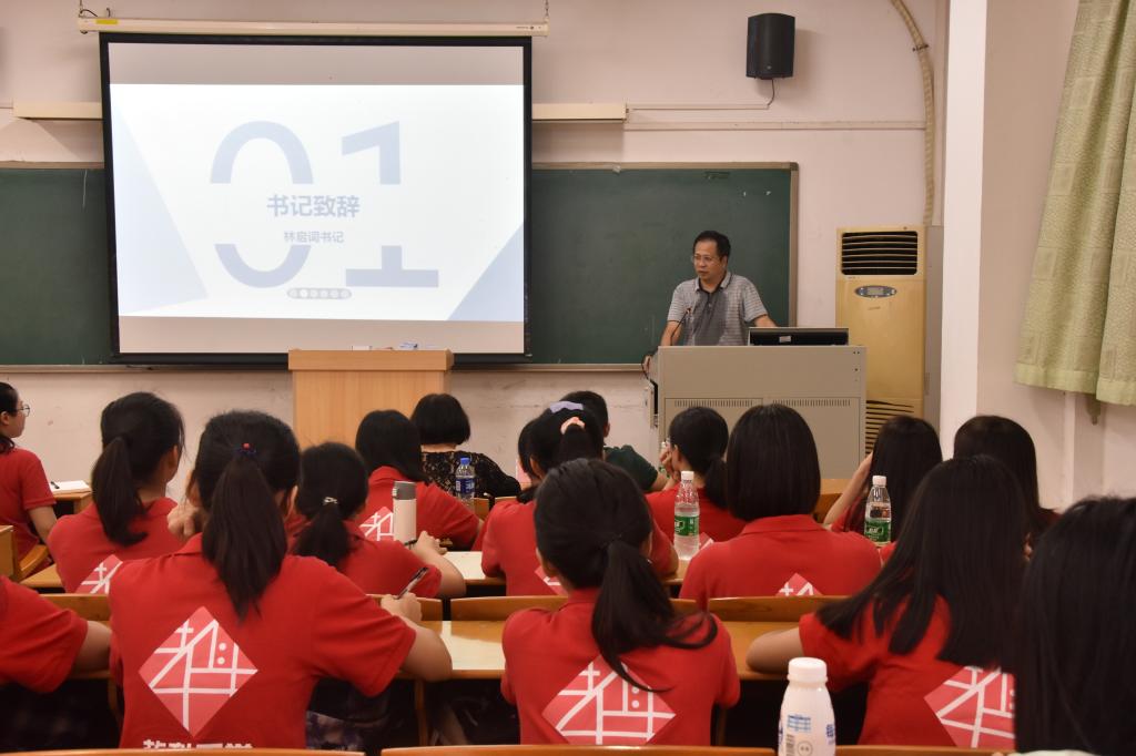 开班仪式的第二项议程,全体对三下乡视频进行了回顾,随后进行第三项议程:党委吴水爱副书记就“如何做一名优秀的员工干部”与团学干部进行经验分享,吴水爱副书记结合自身经历,生动有趣地向大家阐述了作为一名员工干部所应当具备的素质与能力:作为员工,学习是根本;作为干部,服务同学是职责,而服务同学的同时,又在员工群体中起模范带头作,因此每位团学干部在日常生活中都得注意自身言行,要有政治意识、责任意识、大局意识、奉献意识与民主意识,要树立远大志向,选择正确的成长之路,多多参与社会实践,在社会生活中发光发热,树立新时代老员工优秀榜样。