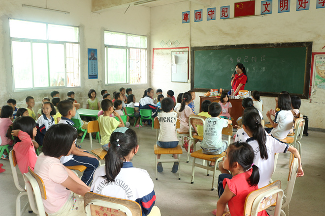 班会开完后就进入了我们正式的上课时间,第一堂课就是绘画课,孩子们那认真的小眼神和仔细画画的动作,令我们十分感动。下午的团体辅导课,小老师们给孩子们上了一节玩游戏的课,这堂课不仅仅是为了休闲娱乐,更多的是为了让他们通过这堂课学会认识自我,完善自我,提升自我。随着这堂课的结束,我们第一天的支教任务也完成了。