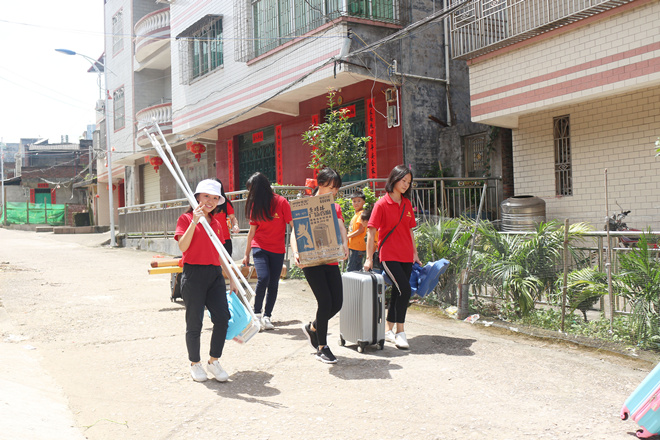 经过两个多月的筹划与准备、五个多小时的颠簸与等待,队员们终于抵达回龙小学。阳光下素雅的墙面、朴实的栅栏门、整排的教学楼,还有那充满乡间气息的微风,无不让人感到舒爽。到达之初,队员们便开始整理住宿环境与课室。大大小小的行李与教具的搬运无疑是一项很大的体力工程,而蚊虫不时地出没更是令人手足无措,但是,队员们齐心协力,努力适应环境,解决各种问题,为接下来的活动做好了前期准备。在夜幕到临之时,大家也终于吃上了今天的第一顿饭,虽不是丰盛的宴席,但在此刻,对于忙碌了一天的队员们来说,每一口饭菜都变成了人间佳肴。