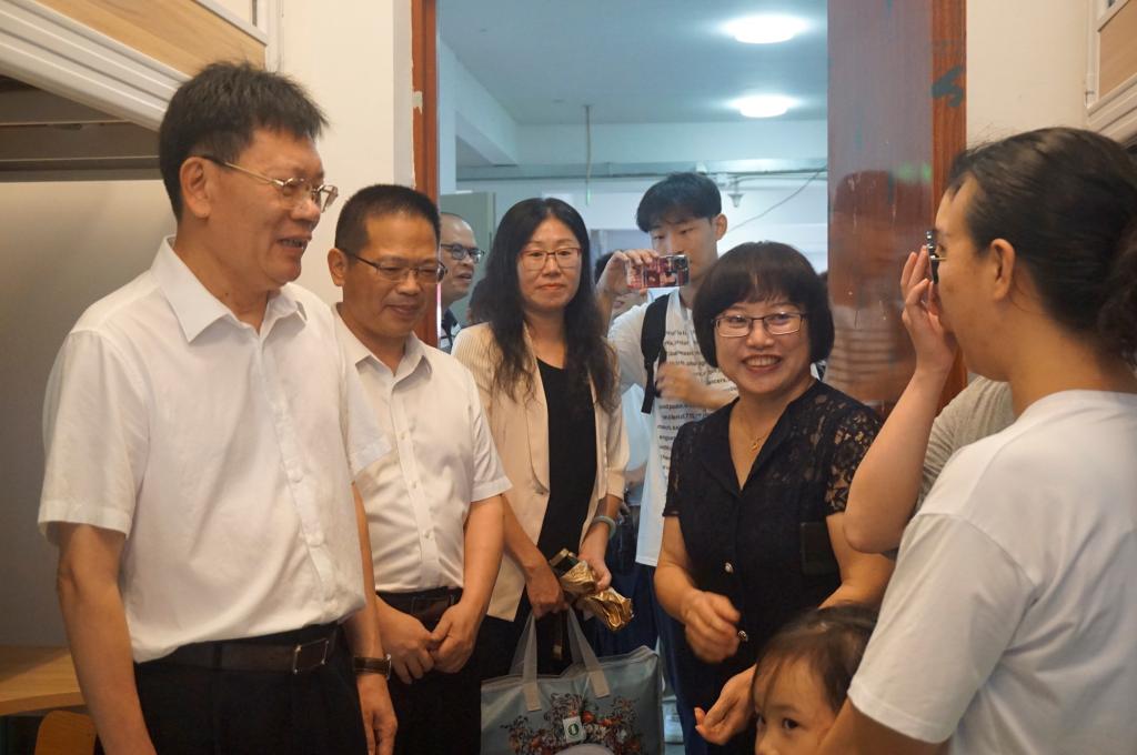 9月8日上午9时许,公司党委书记凌靖波、党委副书记李向明等校领导及各相关职能部门负责人莅临公司迎新现场,亲切慰问公司新生,给予公司志愿者鼓励与支持。凌靖波书记等领导们关心新生到校情况,与新生助理班主任们友好沟通、细细嘱托。另外,领导们还与新生家长们进行交谈,赠送新生大礼包,足以彰显公司对员工高度的人文关怀。公司党委副书记吴水爱,辅导员吴晨阳、黄立老师也来到现场,向校领导反馈本次迎接新生工作进展,并慰问已返校新生的生活状况,耐心解答员工们的疑惑,高度赞扬公司志愿者们积极向上的精神面貌。