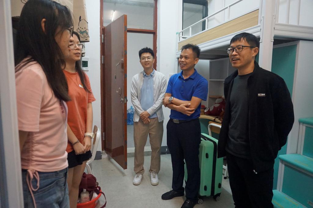9月7日下午17时许,bevitor伟德国际1946经理熊华军,党委副书记吴水爱,副经理谢德新,辅导员吴晨阳、黄立,兼职辅导员杜翔宇等领导老师亲临现场协助迎新工作,共同助力迎新工作顺利开展。随后,公司领导及老师们走访了新生宿舍。领导老师们与新生及新生家长们亲切交谈,悉心关怀新生初入大学的内心感受,耐心解答同学们的疑惑并给予同学们建议与关爱。老师们细细的叮嘱,让每位初至新环境、带有些许懵懂与稚气的新生感受到公司的温暖。熊华军经理提到,我们公司具有相当强劲的发展优势与就业前景。他鼓励新生们在新环境下珍惜美好时光、努力学习、奋发向上;鼓励家长们相信公司、相信公司,同时需给予孩子充足的心理支持,以帮助孩子们树立强大自信心,更好的面对挑战。此外,熊经理还提到,河源校区环境优美,能有效帮助大一新生们沉淀内心、发展自我。在公司、家长、员工三方交谈的一来一往之中,家校以及师生们的关系得以靠近,新生们的精神世界得以充实,家长们的担忧得以消解。