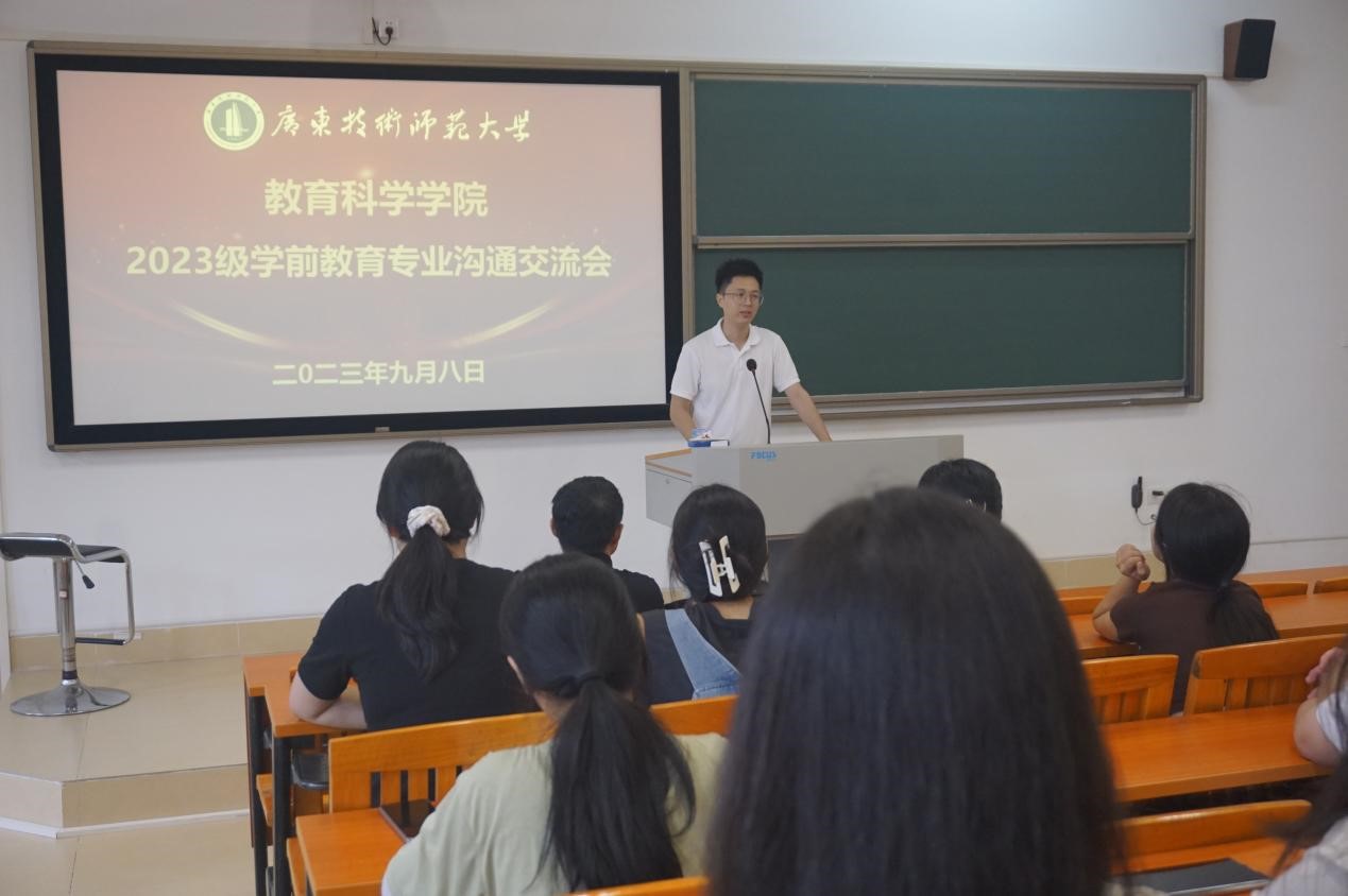 本次交流会由黄立老师主持。会议第一项,由2023级学前新生代表,来自23级学前4班的曾怡同学上台发言。曾怡同学以自身作为例子,向在场的各位同学家长讲述自己的家人对于她选择就读学前教育专业的不理解与她依旧坚定选择学前教育专业并向家人介绍公司学前教育专业具有广泛的发展前景的亲身经历。她呼吁同学们珍惜大一这一学年的宝贵时光,共同努力学习好专业知识,积极进取,不断提升个人能力,成为更好的自己。曾怡同学对学前教育专业的热爱之情深深地影响了在场的各位同学与家长。