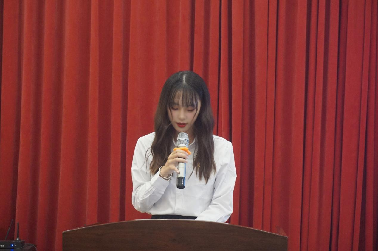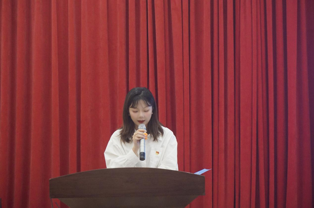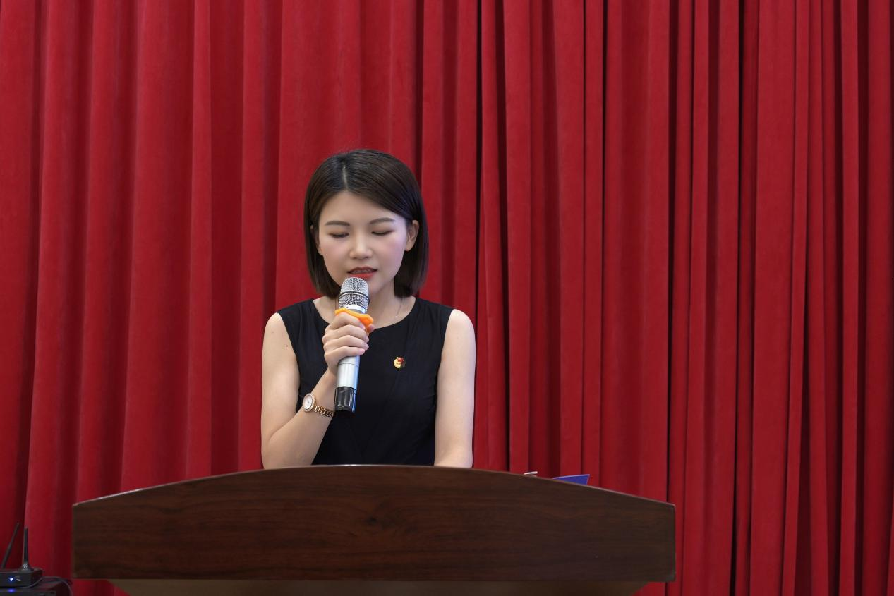 接下来进行的是正式会议。正式会议第一项议程,大会全体成员起立,奏唱国歌。第二项议程为校团委刘雯璇老师致辞。刘老师首先高度肯定了过去的一年里公司完成的各项工作,高度赞扬公司党政领导班子发挥了带头作用,坚持了以党的光辉旗帜为引领,以创新为驱动,有效引领凝聚青年、组织动员青年、联系服务青年的工作。并就公司思想引领、组织建设、创新创业竞赛、社会实践等各方面都取得了突出成绩表示肯定。随后,刘老师强调公司学子应当努力奋斗,积极涵养正气、底气、朝气、才气,并向公司学子提出殷切希望。同时,公司团学干部应当以优秀员工干部的标准来要求自身,砥砺奋进,共同将公司团学工作做的更好。
