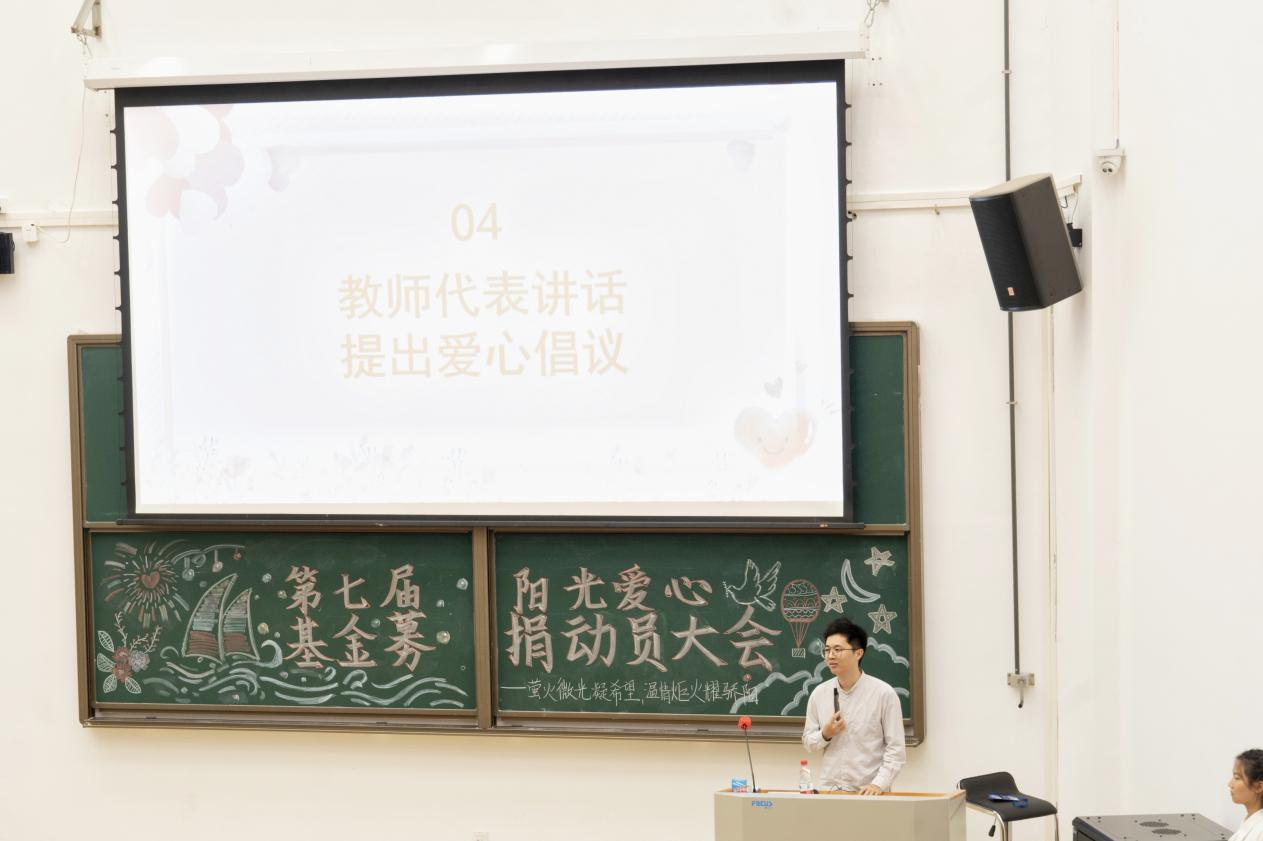 活动中期,黄立老师作为教师代表讲话并提出爱心倡议。他呼吁同学们积极献爱心,行善举,将爱心与善意传递下去,将温暖扩散给更多人。善举汇聚成爱心暖流,点滴善意凝聚将成为推动社会向上向善的强大正能量。