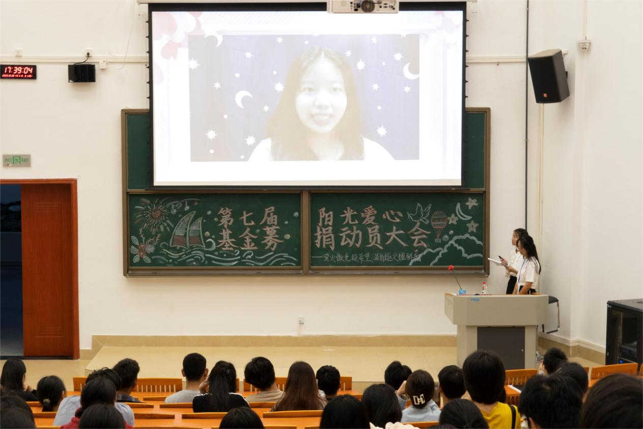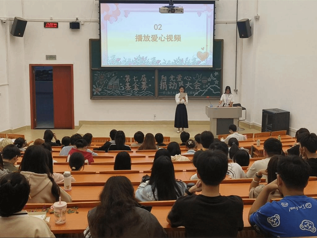 大会第一项内容,主持人对2022-2023学年爱心捐款数据统计等工作情况做介绍。通过清晰明确的捐款数据,同学们对爱心捐募活动有了更深入的了解。随后,同学们一起观看了爱心视频,了解到受助者心声及基金募捐背后温暖的故事,感受爱的力量与意义。此外,视频还向大家介绍了阳光爱心基金募捐活动,让同学们对活动流程以及援助对象有了更清晰的认识。