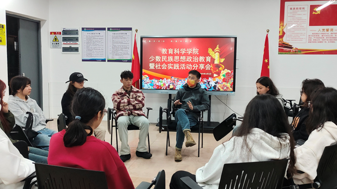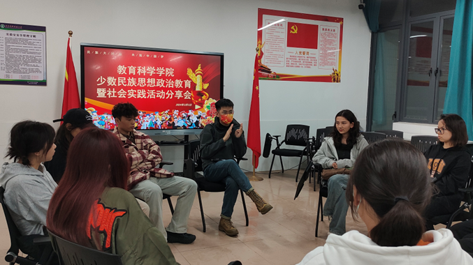 与会的10名少数民族员工分别分享了个人假期期间的社会实践经历以及感想。其中,来自22心理师2班的阿瓦尼萨汗·麦吐尔送分享了她寒假在家的生活旅行经历。她表示经过在广东学习生活一段时间后回到新疆,不仅让他对于自己民族的文化有了更深的认识,充分明白了民族融合,文化交流的重大意义,也增强了她作为中华民族的文化自信。来自22数媒师1班的赛珍向在座的同学分享了藏历新年的特色习俗文化,具有美好寓意的新年食物以及节日礼仪。她表示,虽然各地的习俗文化会有不同,但是各民族向往美好生活的心愿与实现中华民族伟大复兴的理想是一致的。