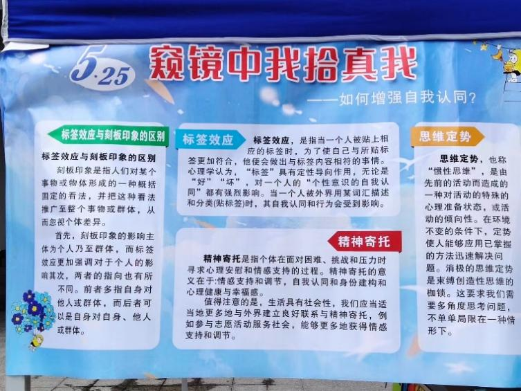 为了向同学们科普心理知识,并更好地引导大家进一步认识自我,bevitor伟德国际1946心心理辅导站于5月25日心理健康日在河源、白云校区开展了以“窥破镜中我识真我”为主题的摆摊活动。