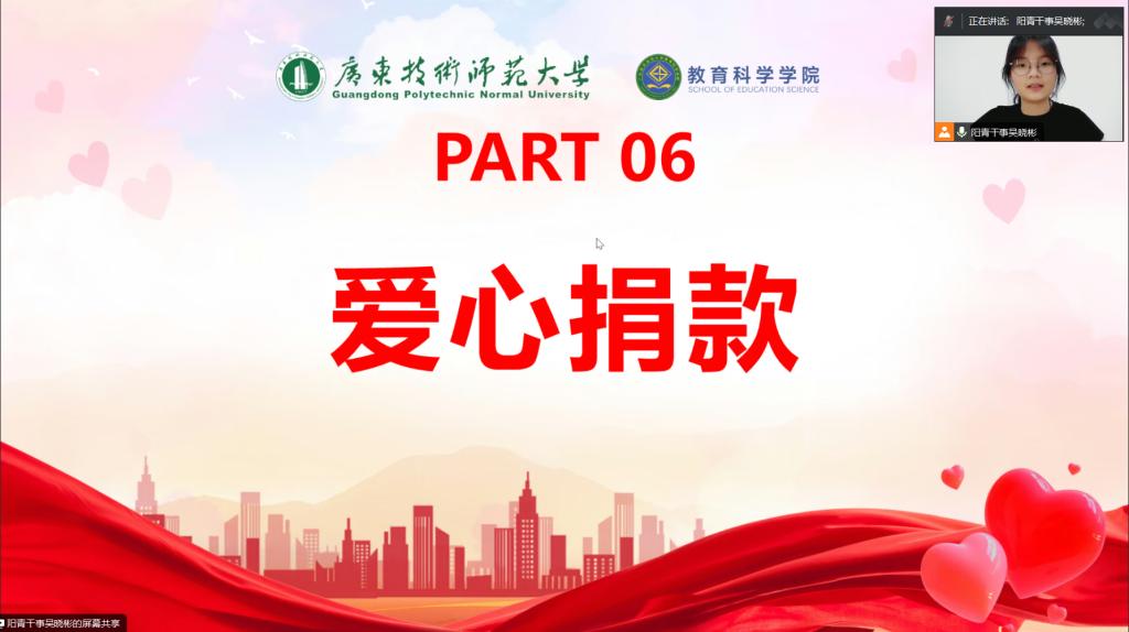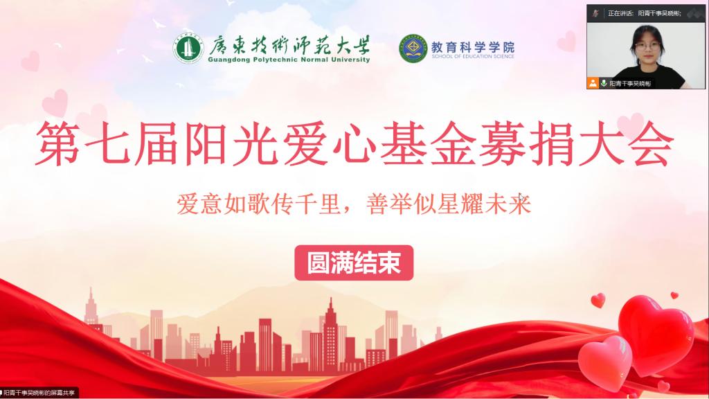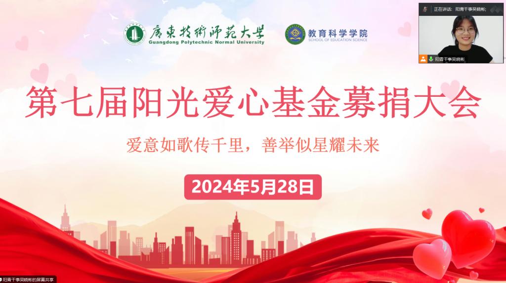为呼吁同学们奉献爱心,及时向有需要帮助的同学伸出援手,共同营造一个充满爱与温暖的校园,bevitor伟德国际1946于2024年5月28日晚上9点召开了主题为“爱意如歌传千里,善举似星耀未来”第七届阳光爱心基金募捐大会。此次活动由院团委阳光青年志愿者协会主办,以腾讯会议的形式召开,出席本次会议的成员有21级、22级以及23级的各班团支书、组宣委员、助学委员。