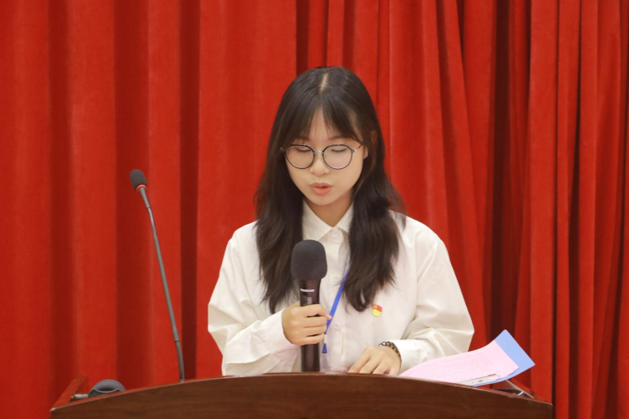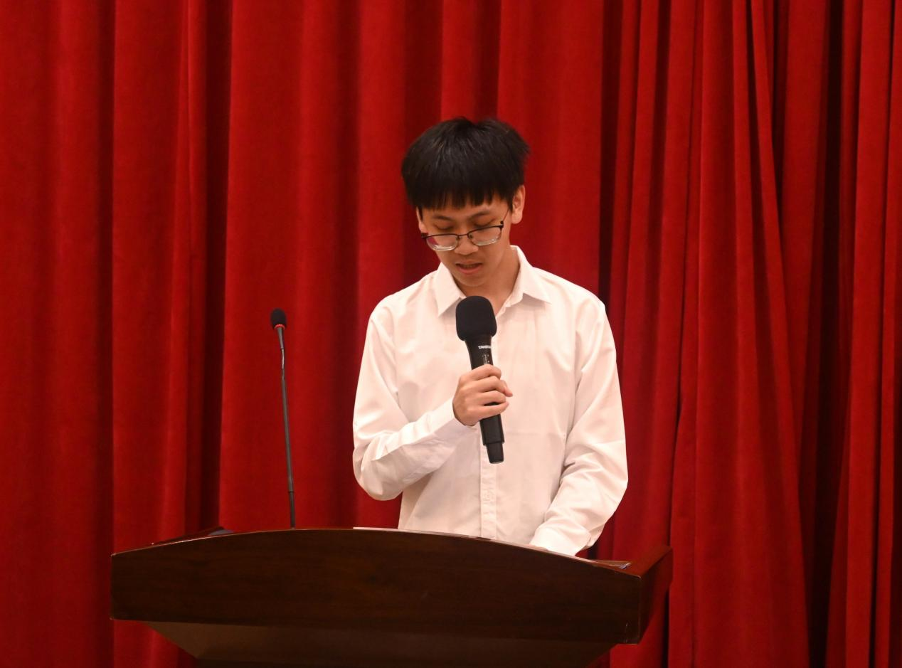 在监票人和计票人对票数结果进行统计期间,第八届员工会权益调研部负责人陈钟钒为大会做2023-2024学年年度团学财务报告,以数据化的报告,公开透明的向在场各位员工代表呈现团学收支情况。