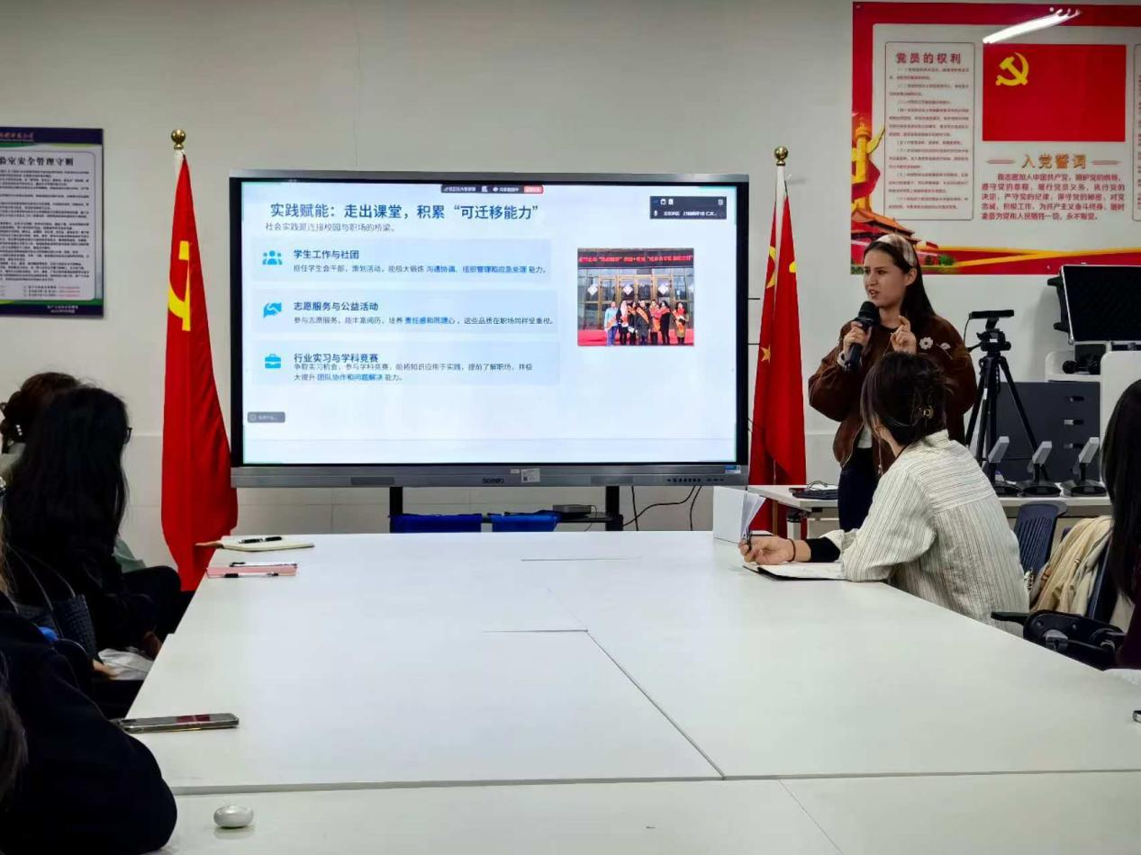 古再努·艾买同学以《我的考研心路历程》为题,结合自身在新东方、外企的工作实践经历,生动讲述了从职场回归校园的决策思考,深入解读“少数民族高层次骨干人才计划”政策核心要点,并围绕学习方法优化、求职竞争力提升、升学备考规划等关键问题,为同学们提供了兼具针对性与可操作性的实践建议。热则亚员工深情回望大学时光,感恩母校悉心培育,以三点真挚建议寄语学弟学妹:勇于尝试各类学习实践机会,在历练中锤炼综合素养;秉持高标准严要求对待学业,以精益求精的态度追求卓越;尽早启动职业规划,提前储备求职技能,牢牢把握发展主动权。两位嘉宾言辞恳切、分享务实,既有个人成长的鲜活感悟,又有干货满满的经验总结,为在场同学指明了前行方向,传递了奋进力量。