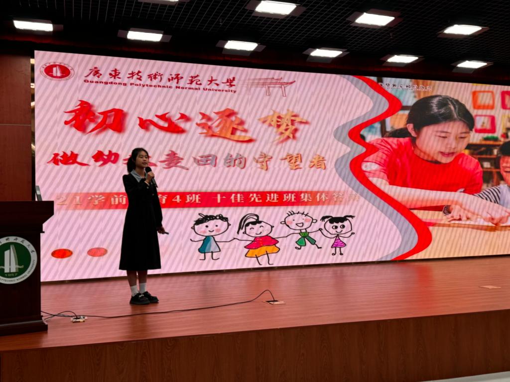 12月17日,伟德国际1946bv2023-2024学年广师大之星“十佳先进班集体”评选大赛决赛在白云校区图书馆举行。经过现场展示,公司2021级学前教育4班从各公司共20支参赛队伍中脱颖而出,荣获2023-2024学年广师大之星“十佳先进班集体”荣誉称号。