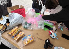 游戏规则:在地上相应位置摆放上8瓶矿泉水,矿泉水上用便利贴写上委屈、疲惫、辛苦、不顺心等多种负面情绪,让参与游戏的同学用沙包砸。
