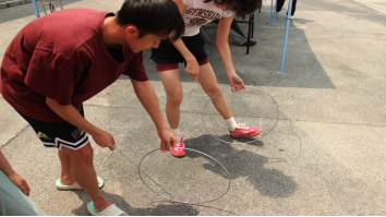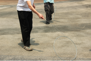游戏一:“滚铁环——滚出欢笑”