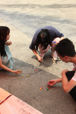 游戏意义:扔石子也是童年娱乐活动里的经典项目。无论是下课放学后还是在田间无聊时,约着小伙伴们一起,在石子地上,头碰头、肩靠肩地蹲在地上游戏。你还记得小时候成功接住石子后成功而跟伙伴得瑟的样子吗?你还记得为了挑选一个称手的石子而努力半天的心情吗?你还记得你在小伙伴面前坚守自己挑选的石子的情境吗?在玩扔石子的过程中,同学们再次感受到那份纯真的欢乐。