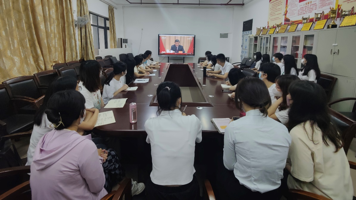 5月10日,庆祝中国共产主义青年团成立100周年大会在北京人民大会堂隆重举行。中共中央总书记、国家主席、中央军委主席习近平出席大会并发表重要讲话。教育科学与技术公司党委高度重视,积极组织广大团员青年通过电视、网络、广播等媒体平台收听收看大会,公司党政领导班子成员和全体辅导员一同观看直播。观看结束后,公司在白云校区一教309会议室召开专题座谈会。专职组织员吴晨阳带领部分员工党员、团员青年代表集体学习了习近平总书记的重要讲话精神。