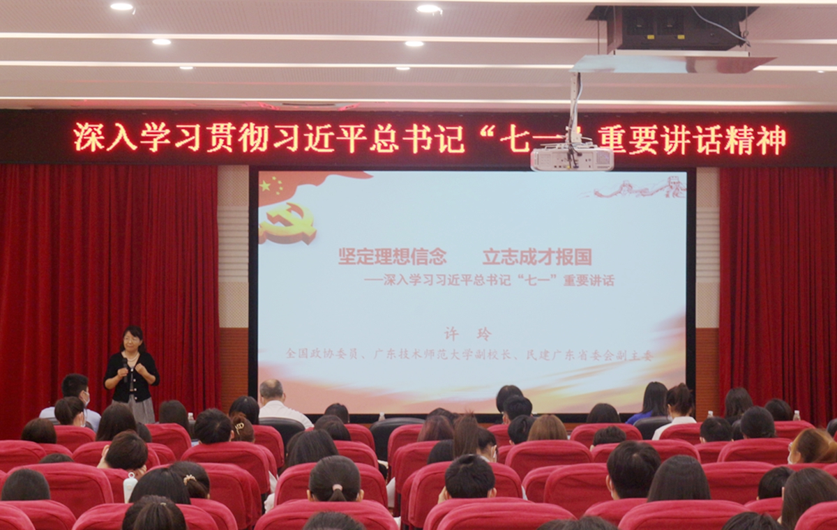许玲以《坚定理想信念,立志成才报国》为主题,紧密围绕深入学习贯彻习近平总书记“七一”重要讲话精神,重点阐述中国共产党建党以来取得的重大成就,以“为什么学”“学习什么”“我们如何做”三个部分展开授课,并结合个人成长经历、事业发展、人生历练以及履职担当情况,详细介绍了自己作为一名管理工作者、科研工作者、参政议政者如何始终践行党的宗旨、传承红色基因,感恩奋进的心路历程和人生感悟。许玲表示,职业教育的发展,关系着我国产业转型升级的人才供给,同时也关系到就业和民生,我们要始终听党话、跟党走,不断推进职业教育改革发展,培养更多的“工匠之师”。