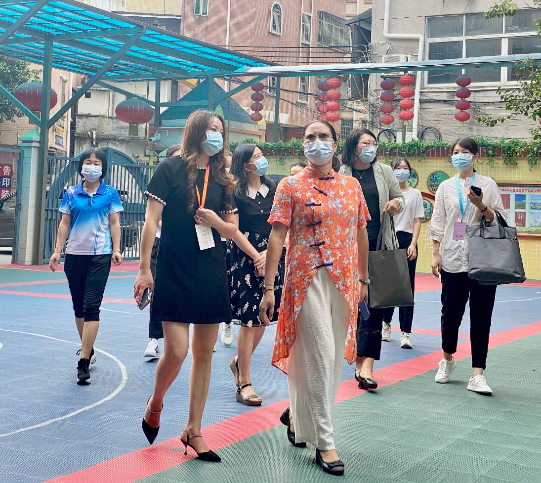 图为专业认证专家组顾海洁在伟德国际1946bv白云实验幼儿园合影留念
