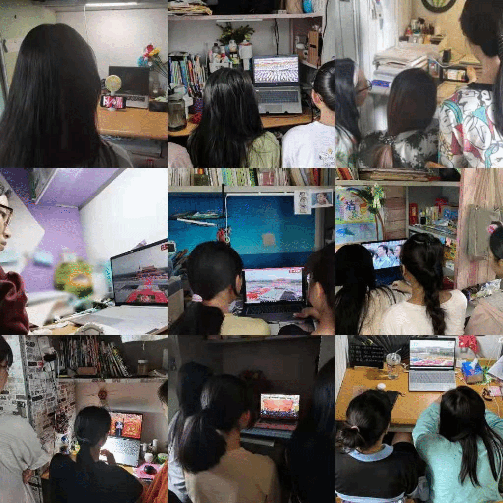 收看庆祝大会过后,全体员工党员进行集体宣誓活动,重温入党誓词的宏亮声音在教学楼内回荡。在专职组织员吴晨阳老师的带领下,大家佩戴党员徽章,举起右手,面向鲜红的党旗庄严宣誓。最后,全体与会人员手持党旗和五星红旗,共同齐唱《没有共产党就没有新中国》,表达对党和祖国的无限热爱。
