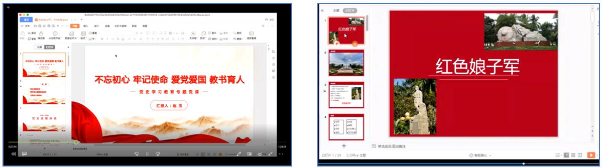 支部第二次开展“党史我来讲”活动。黄芳明、吴仕云老师结合家乡革命历史分享了江西萍乡支部建在连上、海南琼崖红色娘子军两则故事;王禹、朱姝老师结合党的革命历史分享了长征途中39团九连司务长肖永正、江西瑞金共和国第一军嫂陈发姑两则故事;伍国华、周元春老师结合新中国的奋斗历程分享了聂荣臻元帅领导导弹研发和长征二号F火箭总设计师容易的故事;赵志勇老师则分享了带团队参与《中国共产党百年记忆》百集故事制作背后的故事。