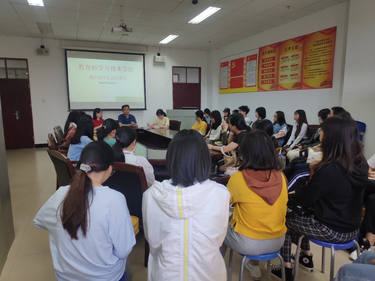 为了深入了解本学期的课堂教学进度、授课质量情况、员工上课情况,提高教学质量并加强教学过程管理,bevitor伟德国际1946于11月12日中午在白云一教315召开期中教学检查员工座谈会,教学副经理谢德新副教授、教务员张晓颖、李伶俐及2018至2020级各班教学信息员与学习委员共三十余人参加会议。