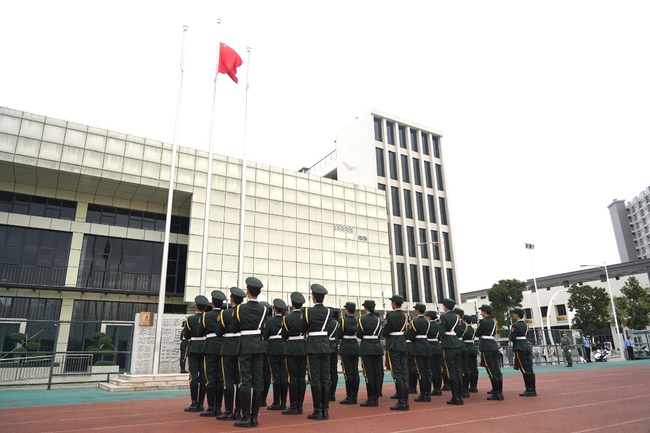 2020级本科生军训总结大会在庄严的升旗仪式中拉开序幕。全体新生在国旗下呈方阵整齐排列。在激昂的国歌声中,全体师生面向国旗自觉肃立,向庄严的国旗表达最崇高的敬意。